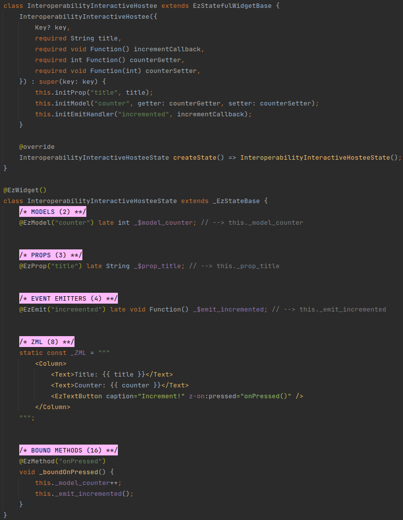initProp- initialize an@Ezprop.initModel- initialize an@EzModelor an@EzOptionalModel, using a getter and a setter functions.initEmitHandler- initialize an@EzEmitwith an event handler function.initInterpolatedText- sets the Interpolated Text of the widget.